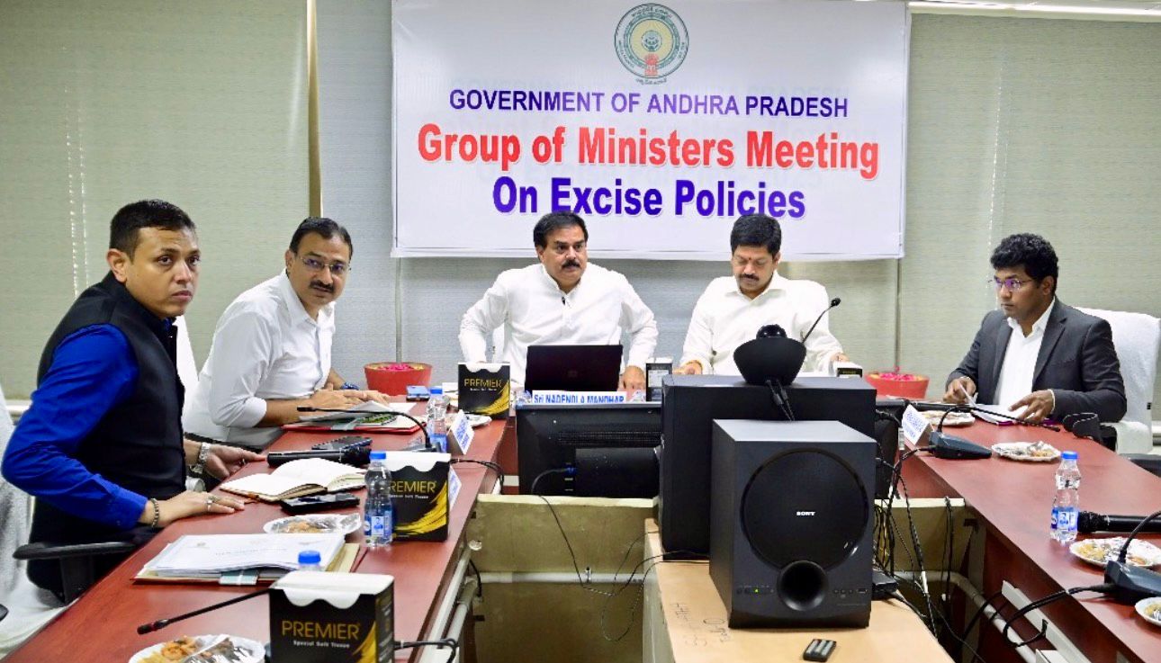 A cabinet sub-committee on excise policies met on Monday at the Excise Commissioner’s office in Mangalagiri, chaired by Minister for Mines and Excise Kollu Ravindra. Food and Civil Supplies Minister Nadendla Manohar attended the session, while MSME, SERP & NRI Affairs Minister Kondapalli Srinivas and Health Minister Satyakumar Yadav joined via video conference.